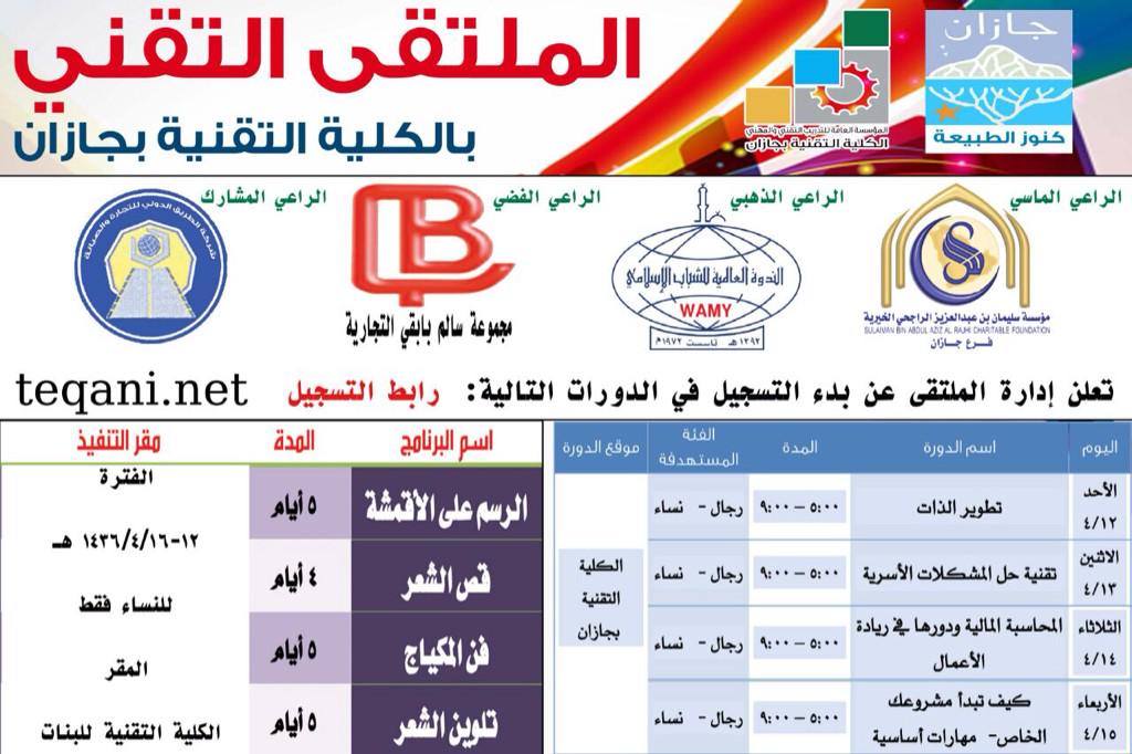 كلية التقنية للبنات بجازان V Twitter تقيم الكلية التقنية للبنات يوم الأحد القادم دورات مجانية يتم التسجيل عن طريق الموقع اﻹلكتروني Http T Co F8o9qzfbhe Http T Co C3ksvtabht
