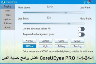أفضل برنامج للحفاظ علي عينيك من الضوء المنبعث من الحاسوب