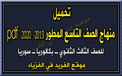 منهاج الصف التاسع المطور 2019 2020 في سوريا