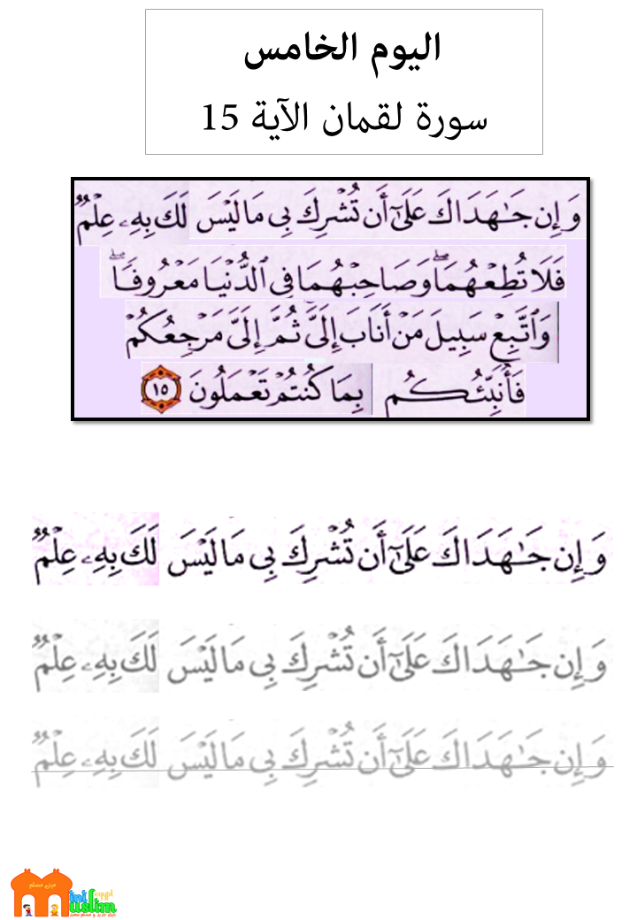 المصحف المحفظ رواية سورة لقمان الآية 15
