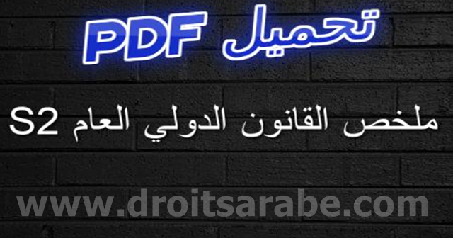 تلخيص مميز لمادة القانون الدولي العام Pdf للتحميل الفصل الثاني S2