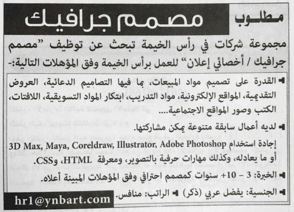 وظائف مصمم جرافيك 14 9 2019 وظائف شاغرة فى الامارات