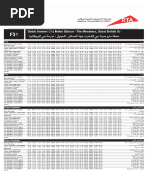 F31 Dubai Internet City Metro To The Meadows Dubai Bus Service Timetable Dubai Service Industries