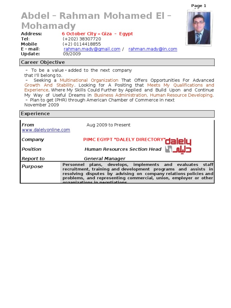 Mostafa Human Resources Employment